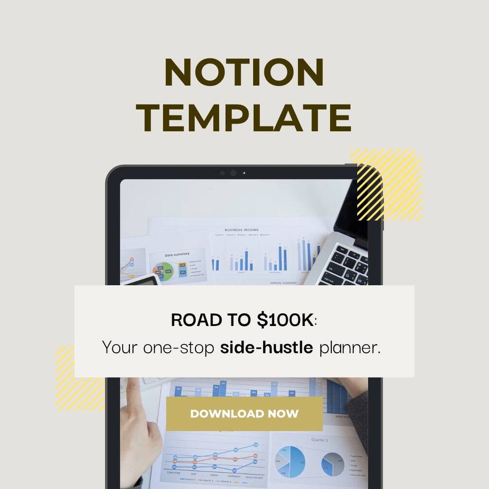 You'll get our ULTIMATE ROAD TO $100K: Your one-stop side-hustle planner!